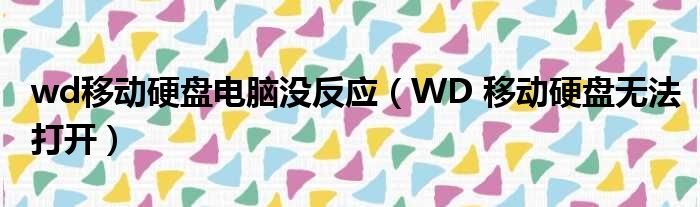 导读 大家好,今天小六子来为大家解答以下的问题,关于wd移动硬盘电脑没反应,WD 移动硬盘无法打开这个很多人还不知道,现在让我们一起来看看吧