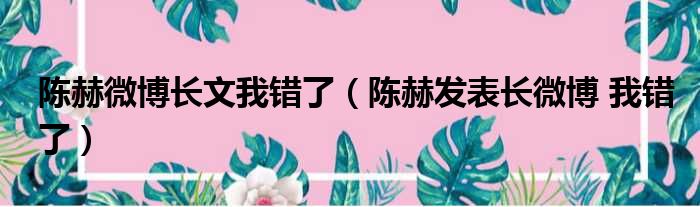 导读 大家好,今天小六子来为大家解答以下的问题,关于陈赫微博长文我错了,陈赫发表长微博 我错了这个很多人还不知道,现在让我们一起来看看吧