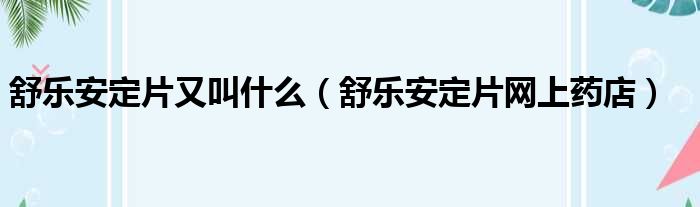 舒乐安定片又叫什么(舒乐安定片网上药店)