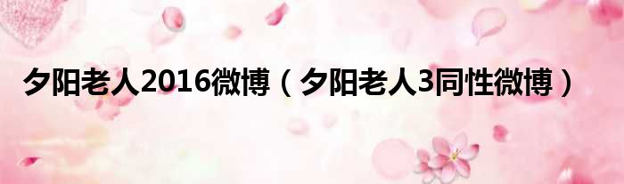大家好,今天小六子来为大家解答以下的问题,关于夕阳老人2016微博,夕阳老人3同性微博这个很多人还不知道,现在让我们一起来看看吧!