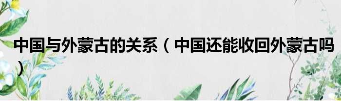导读 大家好,今天小六子来为大家解答以下的问题,关于中国与外蒙古的关系,中国还能收回外蒙古吗这个很多人还不知道,现在让我们一起来看看吧!1