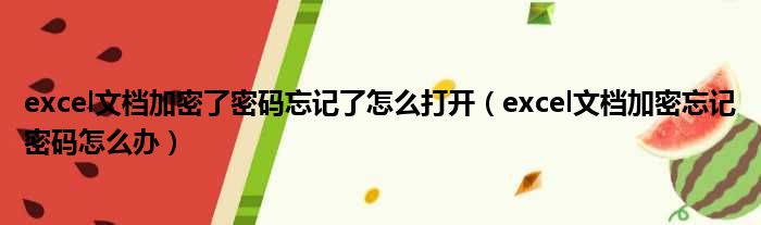 excel文档加密了密码忘记了怎么打开(excel文档加密忘记密码怎么办)