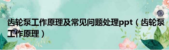 齿轮泵工作原理及常见问题处理ppt(齿轮泵工作原理)
