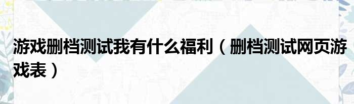 游戏删档测试我有什么福利(删档测试网页游戏表)