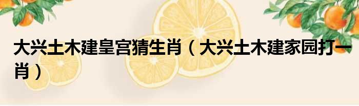 大家好,今天小六子来为大家解答以下的问题,关于大兴土木建皇宫猜生肖,大兴土木建家园打一肖这个很多人还不知道,现在让我们一起来看看吧!