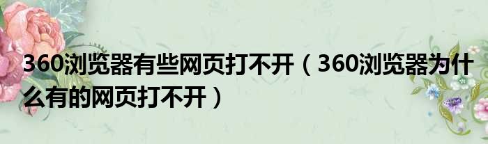 360浏览器有些网页打不开(360浏览器为什么有的网页打不开)