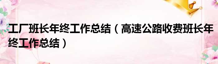 工厂班长年终工作总结(高速公路收费班长年终工作总结)
