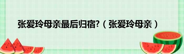 张爱玲母亲最后归宿?(张爱玲母亲)