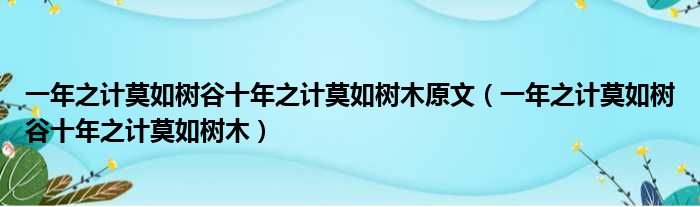 一年之计莫如树谷十年之计莫如树木原文(一年之计莫如树谷十年之计莫如树木)
