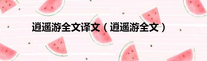 导读 大家好,今天小六子来为大家解答以下的问题,关于逍遥游全文译文,逍遥游全文这个很多人还不知道,现在让我们一起来看看吧!1、逍遥游全文,