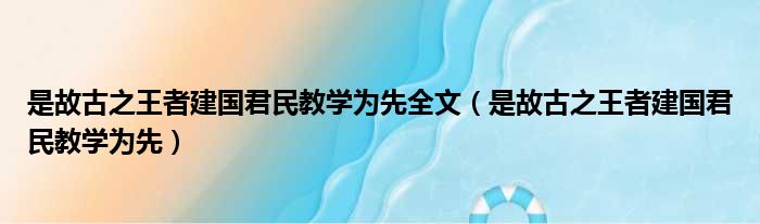 是故古之王者建国君民教学为先全文(是故古之王者建国君民教学为先)