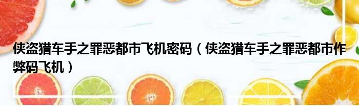 侠盗猎车手之罪恶都市飞机密码(侠盗猎车手之罪恶都市作弊码飞机)