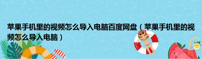 苹果手机里的视频怎么导入电脑百度网盘(苹果手机里的视频怎么导入电脑)