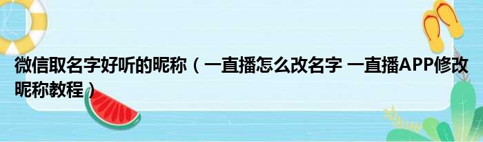 导读 大家好,今天小六子来为大家解答以下的问题,关于微信取名字好听的昵称,一直播怎么改名字 一直播APP修改昵称教程这个很多人还不知道,现在