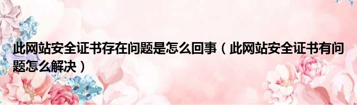 此网站安全证书存在问题是怎么回事(此网站安全证书有问题怎么解决)