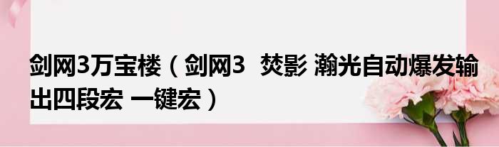 剑网3万宝楼(剑网3 焚影 瀚光自动爆发输出四段宏 一键宏)