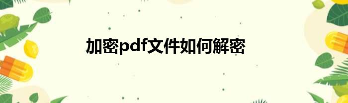 加密pdf文件如何解密