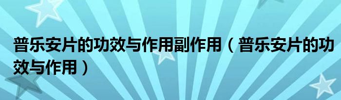 普乐安片的功效与作用副作用(普乐安片的功效与作用)