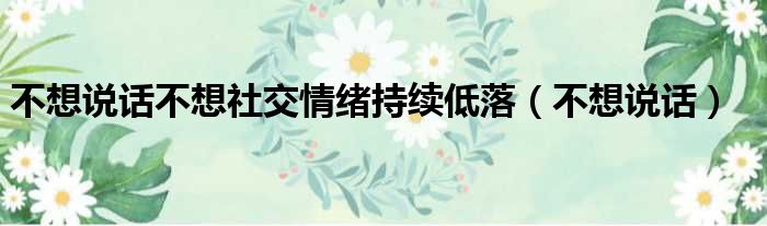 导读 大家好,今天小六子来为大家解答以下的问题,关于不想说话不想社交情绪持续低落,不想说话这个很多人还不知道,现在让我们一起来看看吧!1、