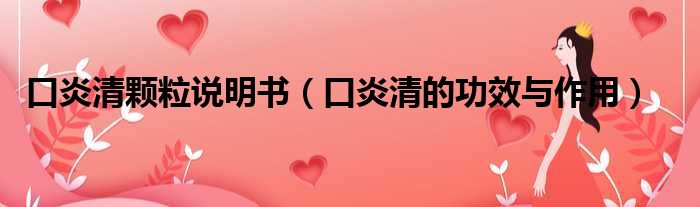 导读 大家好,今天小六子来为大家解答以下的问题,关于口炎清颗粒说明书,口炎清的功效与作用这个很多人还不知道,现在让我们一起来看看吧!1、你
