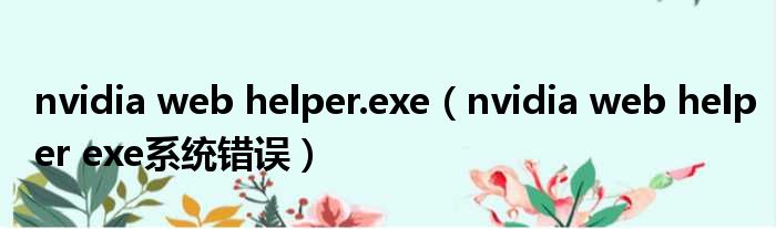 nvidia web helper.exe(nvidia web helper exe系统错误)