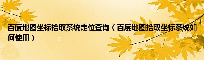 百度地图坐标拾取系统定位查询(百度地图拾取坐标系统如何使用)