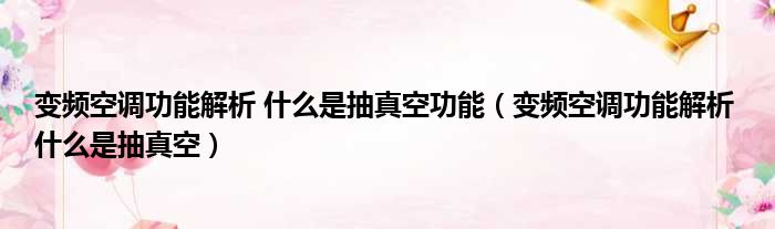 变频空调功能解析 什么是抽真空功能(变频空调功能解析 什么是抽真空)