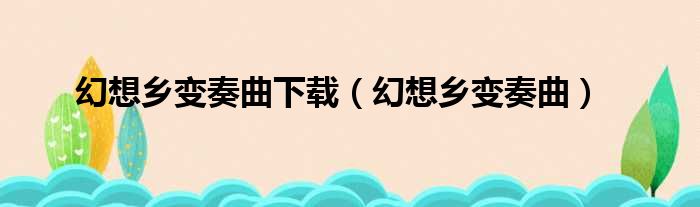 导读 大家好,今天小六子来为大家解答以下的问题,关于幻想乡变奏曲下载,幻想乡变奏曲这个很多人还不知道,现在让我们一起来看看吧!1、幻想乡变