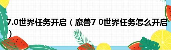 7.0世界任务开启(魔兽7 0世界任务怎么开启)