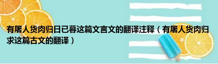 有屠人货肉归日已暮这篇文言文的翻译注释(有屠人货肉归 求这篇古文的翻译)