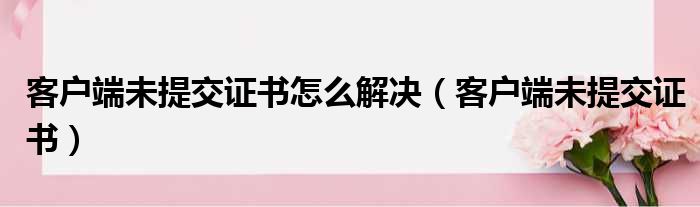 导读 大家好,今天小六子来为大家解答以下的问题,关于客户端未提交证书怎么解决,客户端未提交证书这个很多人还不知道,现在让我们一起来看看吧