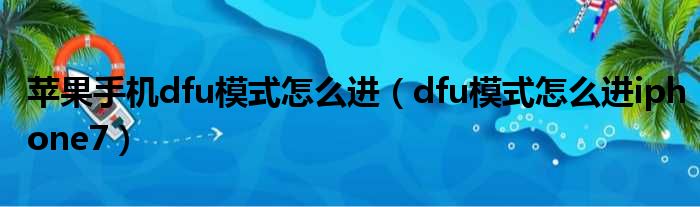 苹果手机dfu模式怎么进(dfu模式怎么进iphone7)
