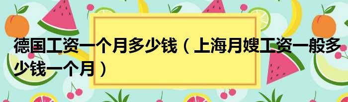导读 大家好,今天小六子来为大家解答以下的问题,关于德国工资一个月多少钱,上海月嫂工资一般多少钱一个月这个很多人还不知道,现在让我们一起