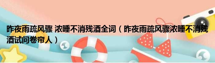 导读 大家好,今天小六子来为大家解答以下的问题,关于昨夜雨疏风骤 浓睡不消残酒全词,昨夜雨疏风骤浓睡不消残酒试问卷帘人这个很多人还不知道
