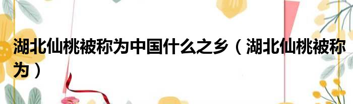 导读 大家好,今天小六子来为大家解答以下的问题,关于湖北仙桃被称为中国什么之乡,湖北仙桃被称为这个很多人还不知道,现在让我们一起来看看吧