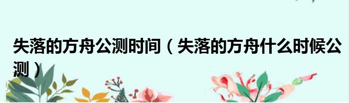 失落的方舟公测时间(失落的方舟什么时候公测)