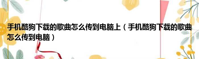 手机酷狗下载的歌曲怎么传到电脑上(手机酷狗下载的歌曲怎么传到电脑)