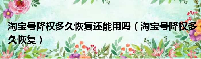 淘宝号降权多久恢复还能用吗(淘宝号降权多久恢复)