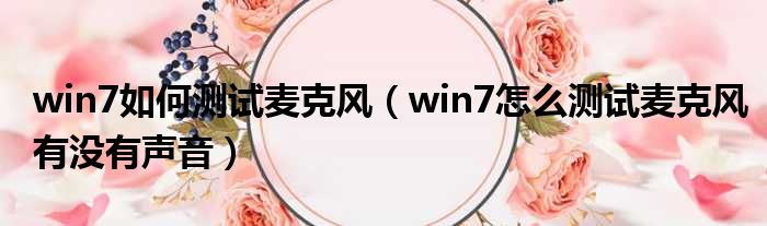 win7如何测试麦克风(win7怎么测试麦克风有没有声音)