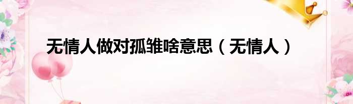 无情人做对孤雏啥意思(无情人)