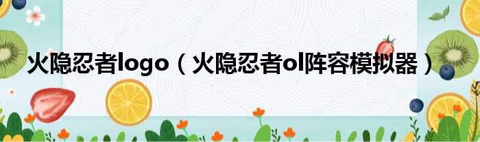 导读 大家好,今天小六子来为大家解答以下的问题,关于火隐忍者logo,火隐忍者ol阵容模拟器这个很多人还不知道,现在让我们一起来看看吧!1、火影