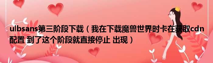 ulbsans第三阶段下载(我在下载魔兽世界时卡在获取cdn配置 到了这个阶段就直接停止 出现)