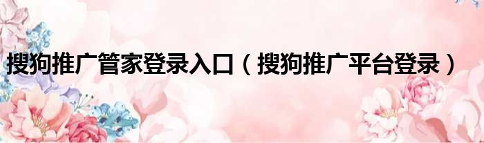 搜狗推广管家登录入口(搜狗推广平台登录)