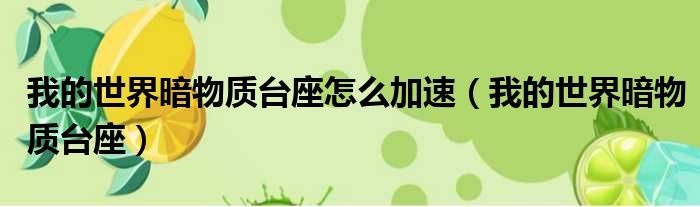 我的世界暗物质台座怎么加速(我的世界暗物质台座)
