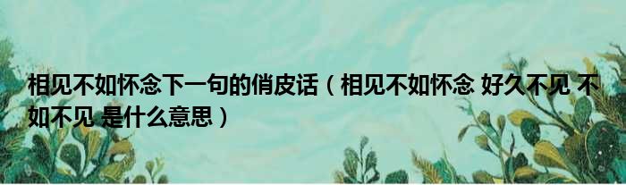 相见不如怀念下一句的俏皮话(相见不如怀念 好久不见 不如不见 是什么意思)