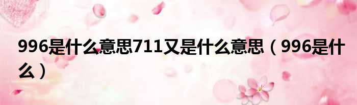 导读 大家好,今天小六子来为大家解答以下的问题,关于996是什么意思711又是什么意思,996是什么这个很多人还不知道,现在让我们一起来看看吧!1