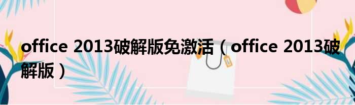 导读 大家好,今天小六子来为大家解答以下的问题,关于office 2013破解版免激活,office 2013破解版这个很多人还不知道,现在让我们一起来看看
