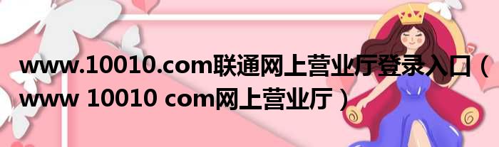 www.10010.com联通网上营业厅登录入口(www 10010 com网上营业厅)
