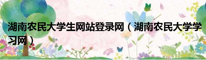 湖南农民大学生网站登录网(湖南农民大学学习网)