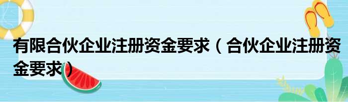 有限合伙企业注册资金要求(合伙企业注册资金要求)